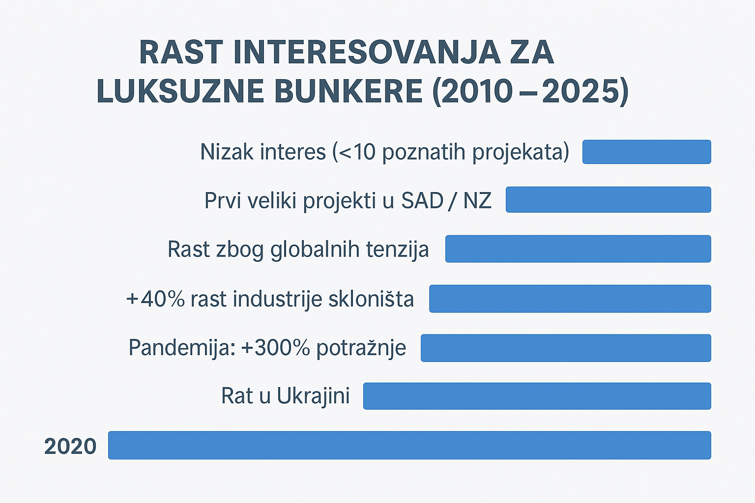 Godina 2025. označava stabilizaciju, ali na veoma visokom nivou — industrija luksuznih bunkera postaje globalni biznis vredan više od milijardu dolara godišnje.